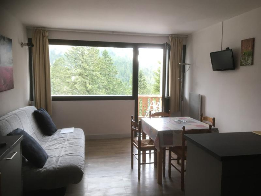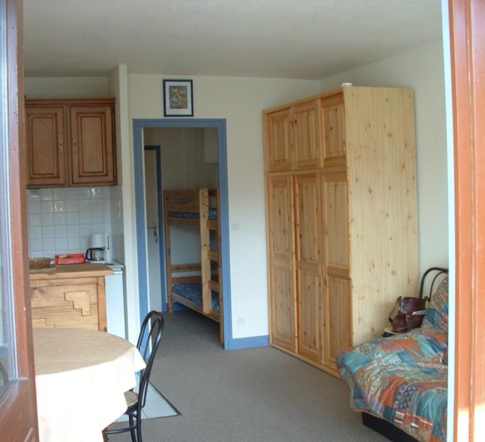 Studio avec balcon exposé plein sud avec vue sur le Plomb du Cantal situé en centre station, au pied de la piste bleue du Rocher du Cerf.Le studio se compose d'une cabine;