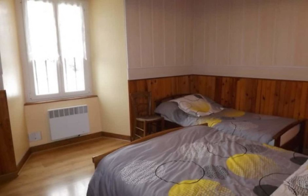 Séjour avec cheminée (poêle bois 35 €/m3) et accès internet wifi, coin-cuisine équipé, 1 chambre avec 1 lit 2 personnes, 1 chambre avec 1 lit 2 personnes et 1 lit 1 personne, salle d'eau, WC indépendant.