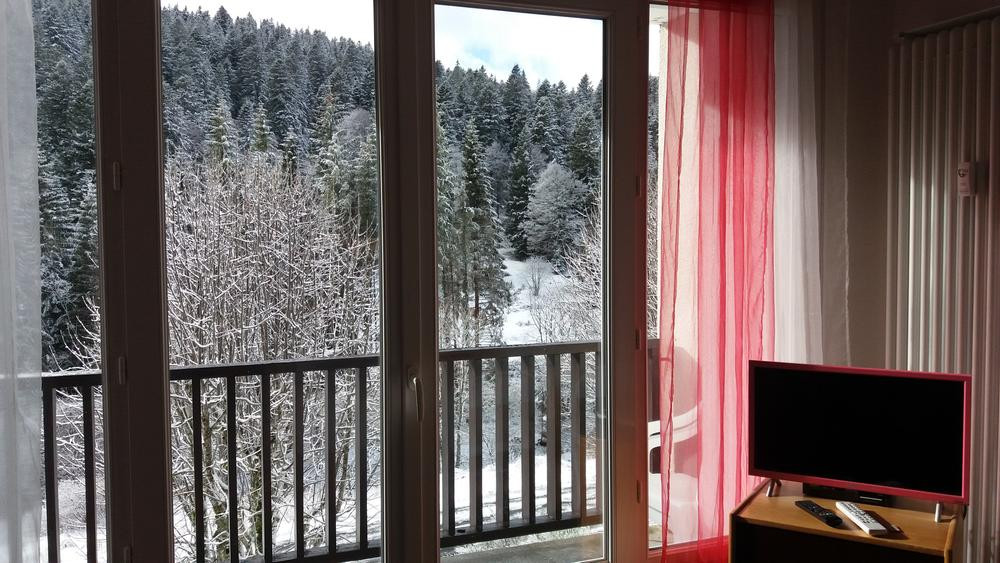 Studio de plein pied avec balcon au 1er étage, à Font d'Alagnon, exposé sud face à la montagne. Au pied des pistes et des chemins de randonnéesPas de vis à vis. Porte de séparation entre le coin montagne et la pièce principale.